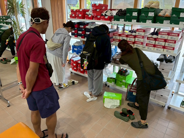 今日は女川町内で『海と釣りとファッションの祭典』というイベントが開催されていて、朝は「なにその組み合わせ~?」と半笑いしていた我々でしたが、昼食後、吸い込まれるように買い物してる女性陣です。笑