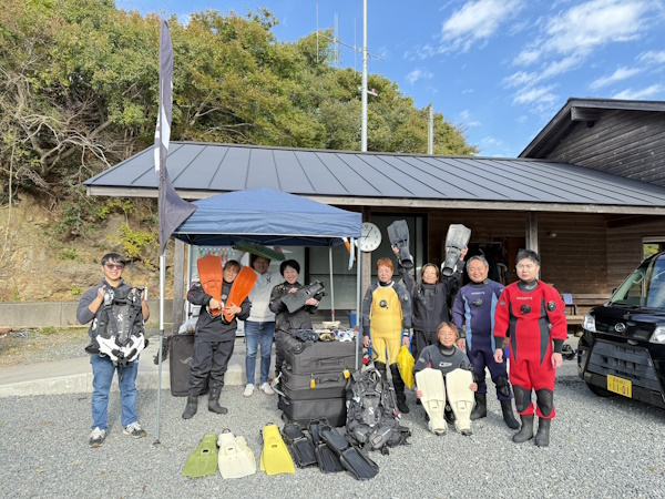 現地ではMOBBYSさんとGULLさんのモニター会が開催中♬ドライスーツやフィンなどを試してみましたよ!