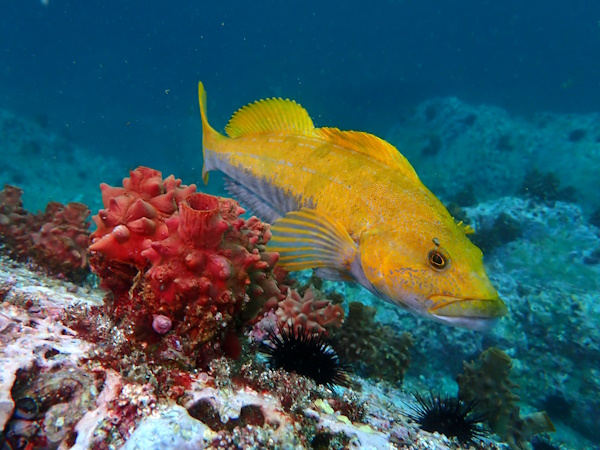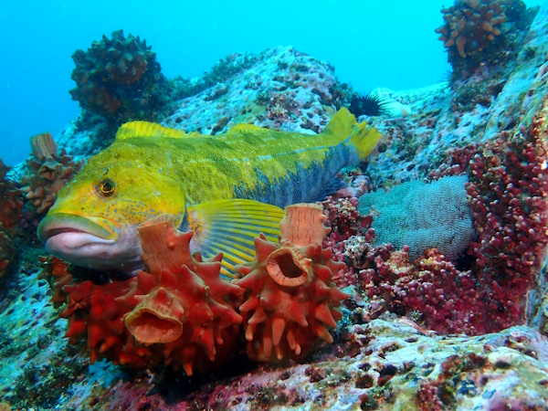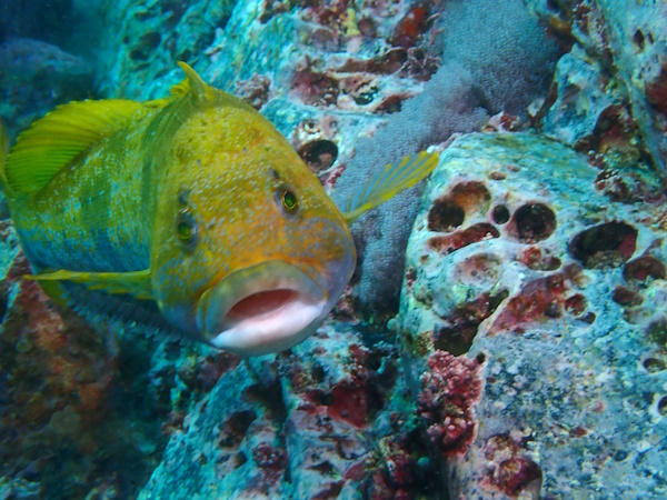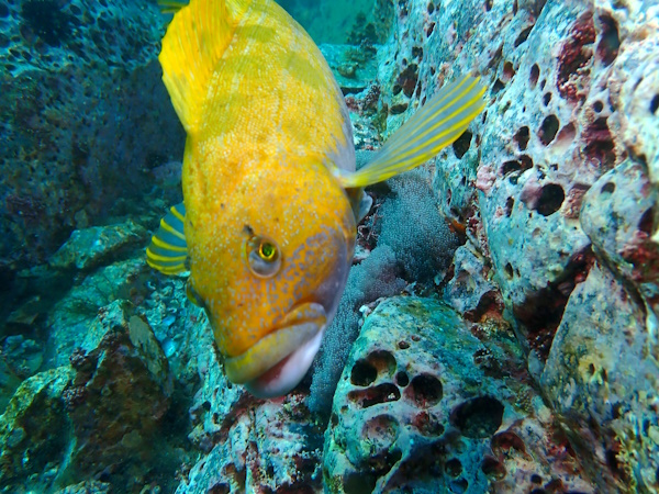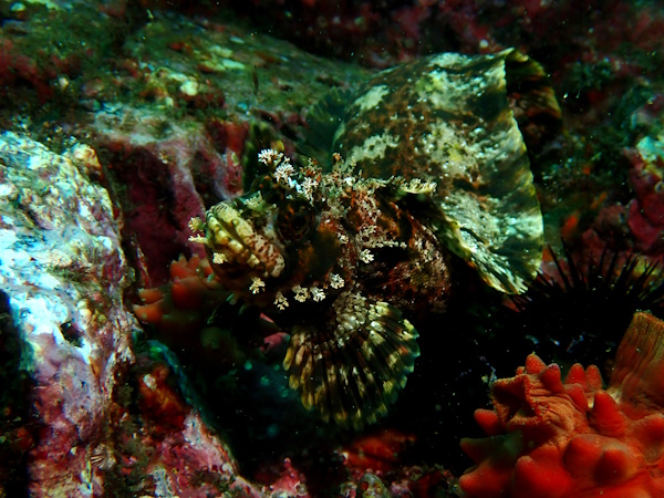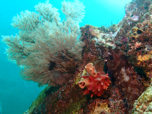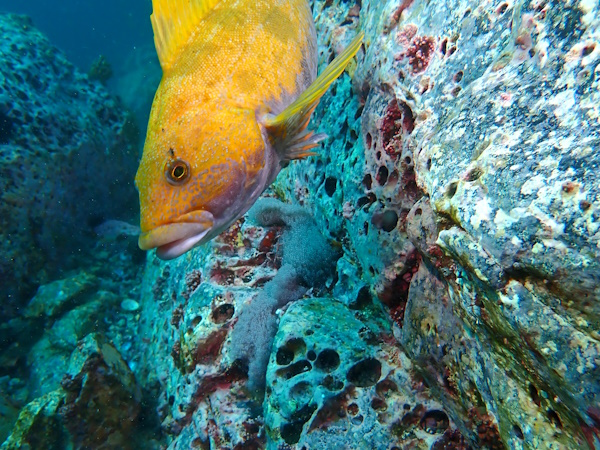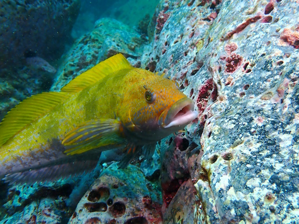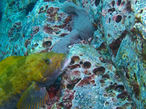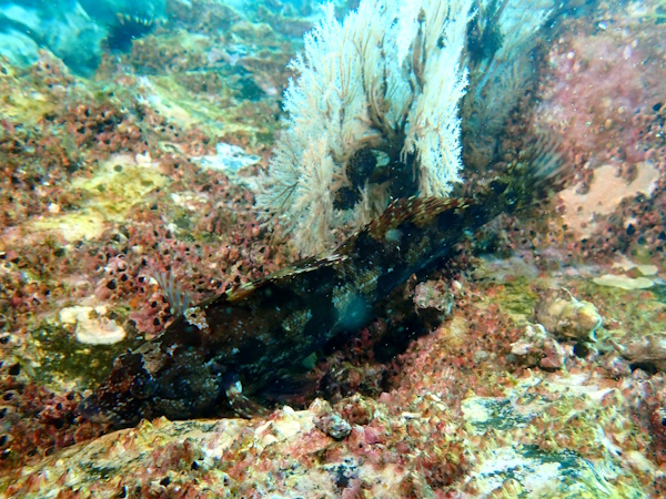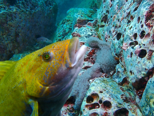 こちらはダイバーが来ても恐れないオスのようで、動じません。