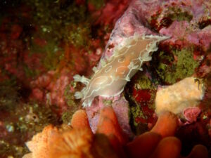 ウミウシでは、名前の分からない小さなウミウシを発見!産卵中でした!!