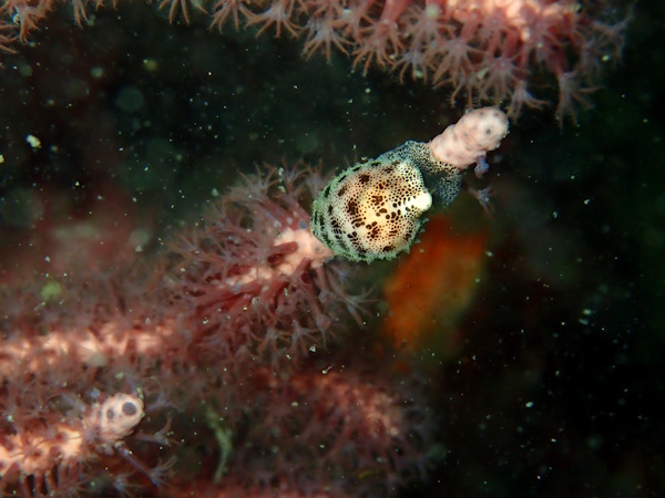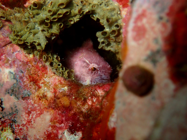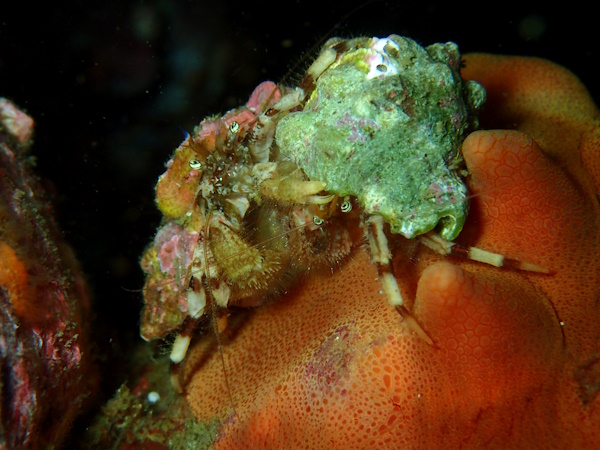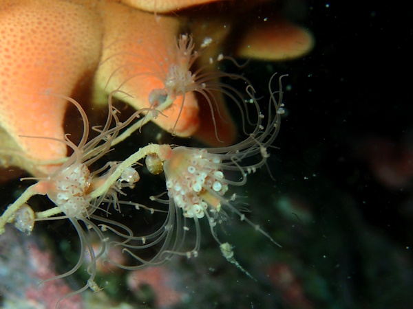 クダウミヒドラに沢山のタテソコエビが住んでいる様子や、フトヤギに住むツグチガイを見たり、交尾前ガードしているヤドカリがホヤの上にいたり。真っ赤なエゾニチリンヒトデの表面は小さな花模様。脱皮直後のスナエビもいました。