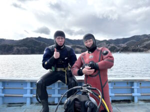 気温は0℃、水温も7℃台、ザ・冬の海です!!