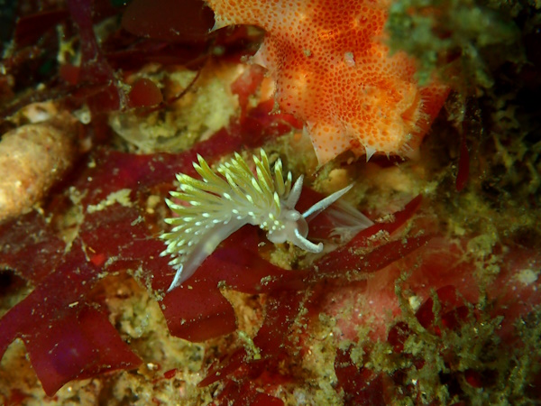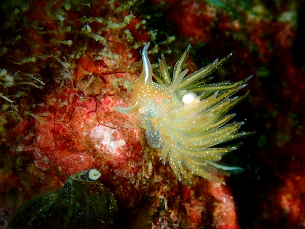 Oさんが黄色いミノウミウシを見つけました!!図鑑と照らし合わせましたが、名前は分かりません~~!