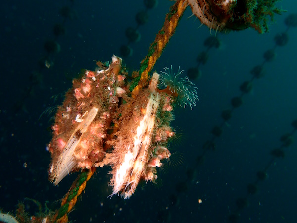 ワイドに撮ったり、ホタテを接写したり。ホタテをよくみるとコザクラミノウミウシが付いてましたよ♬
