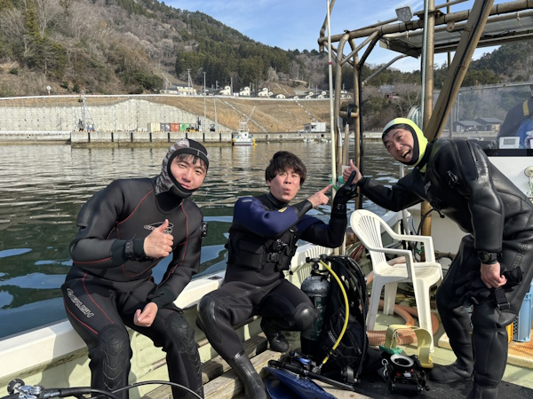 初女川ダイビングだったTさん、水温7℃は初めてで「冷たい、じゃなく、痛い、でした」と感想。