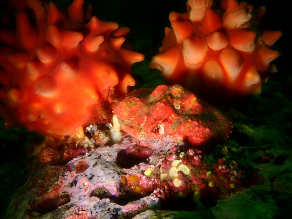 増えてきたメンコガニはホヤと同じ色の甲羅でした。